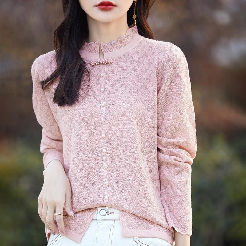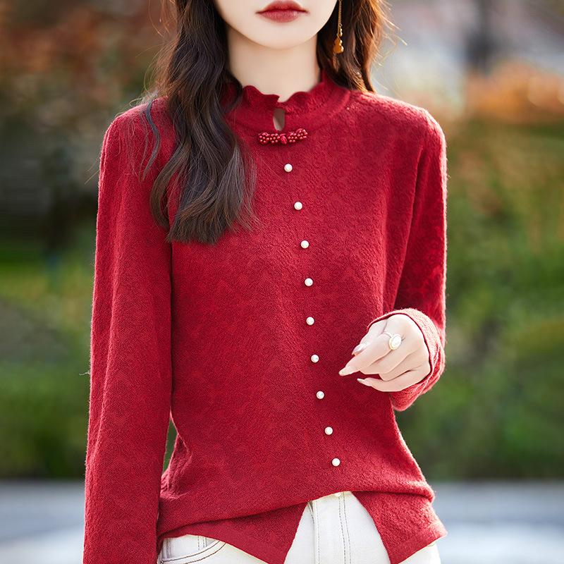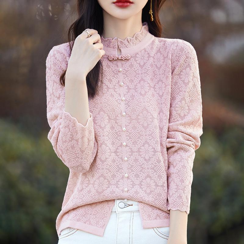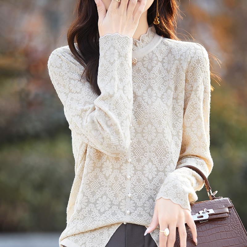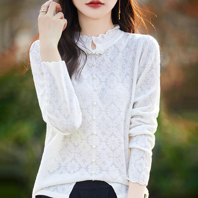 Весенне-осенний новый топ с кружевным воротником средней высоты, модная универсальная рубашка с длинным рукавом для ношения под низ