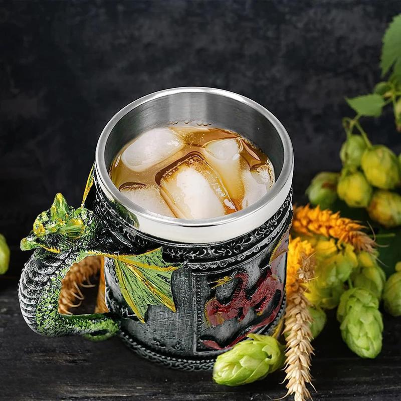 Средневековая пивная кружка с ревущим драконом, пивные кружки, кружка викингов, подарочная кружка из нержавеющей стали для коллекционера драконов