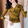 Новая зимняя сетчатая рубашка с V-образным вырезом для женщин с короткими рукавами и принтом в виде маленькой рубашки