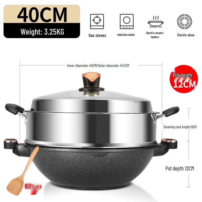 KATA Maifan Stone Non-stick Wok with Steamer, 40CM — купить товар онлайн с бесплатной доставкой по всему миру!