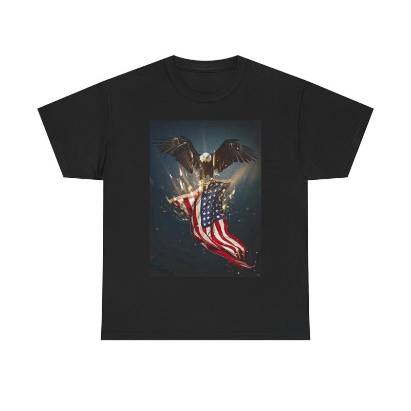 Футболка с американским флагом, изображением белоголового орла, патриотический рисунок, плотный хлопок.