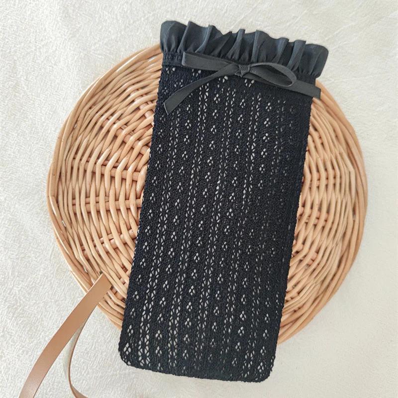 Женские чулки в японском стиле ретро, длинные носки с рюшами в стиле Лолиты, белые кружевные гольфы, милые чулки до бедра с бантом для девочек