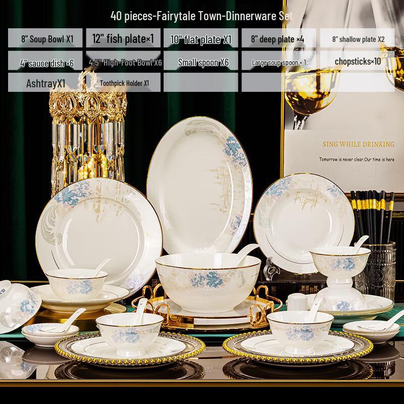 Чжи Ши Новый китайский легкий люкс 40-предметный керамический набор посуды