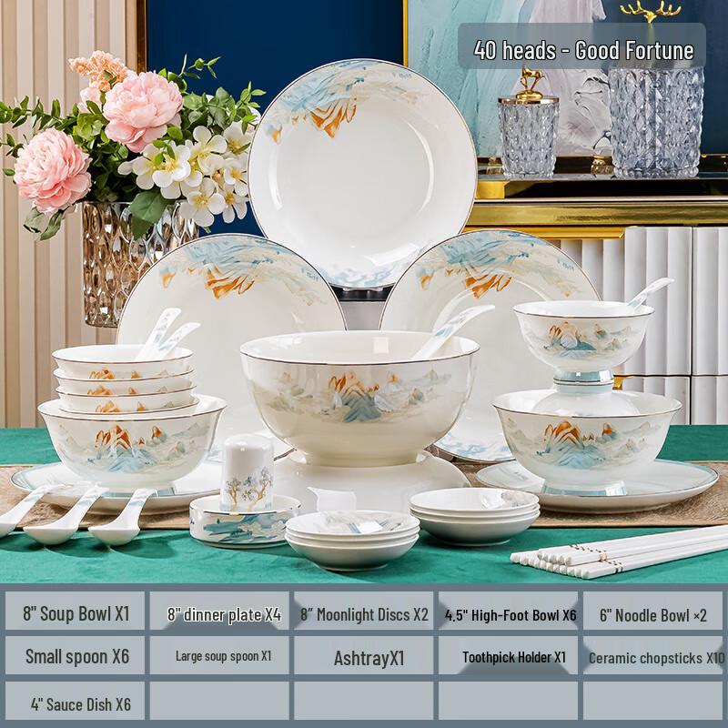 Чжи Ши Благоприятный Набор Столовой Посуды из 40 Предметов