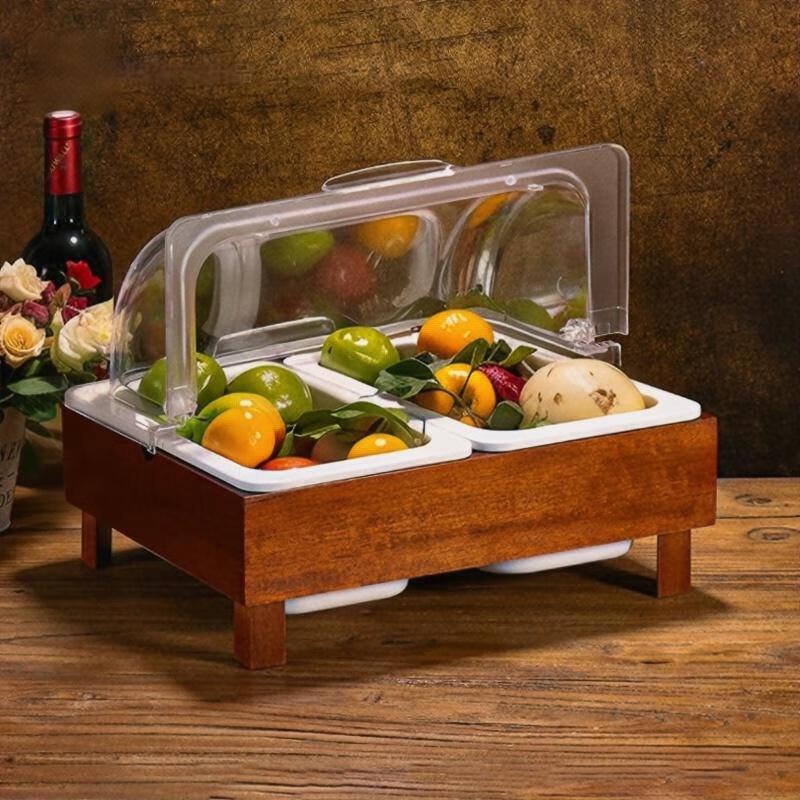 Деревянный 3-секционный поднос для демонстрации еды на шведском столе с крышкой от пыли
