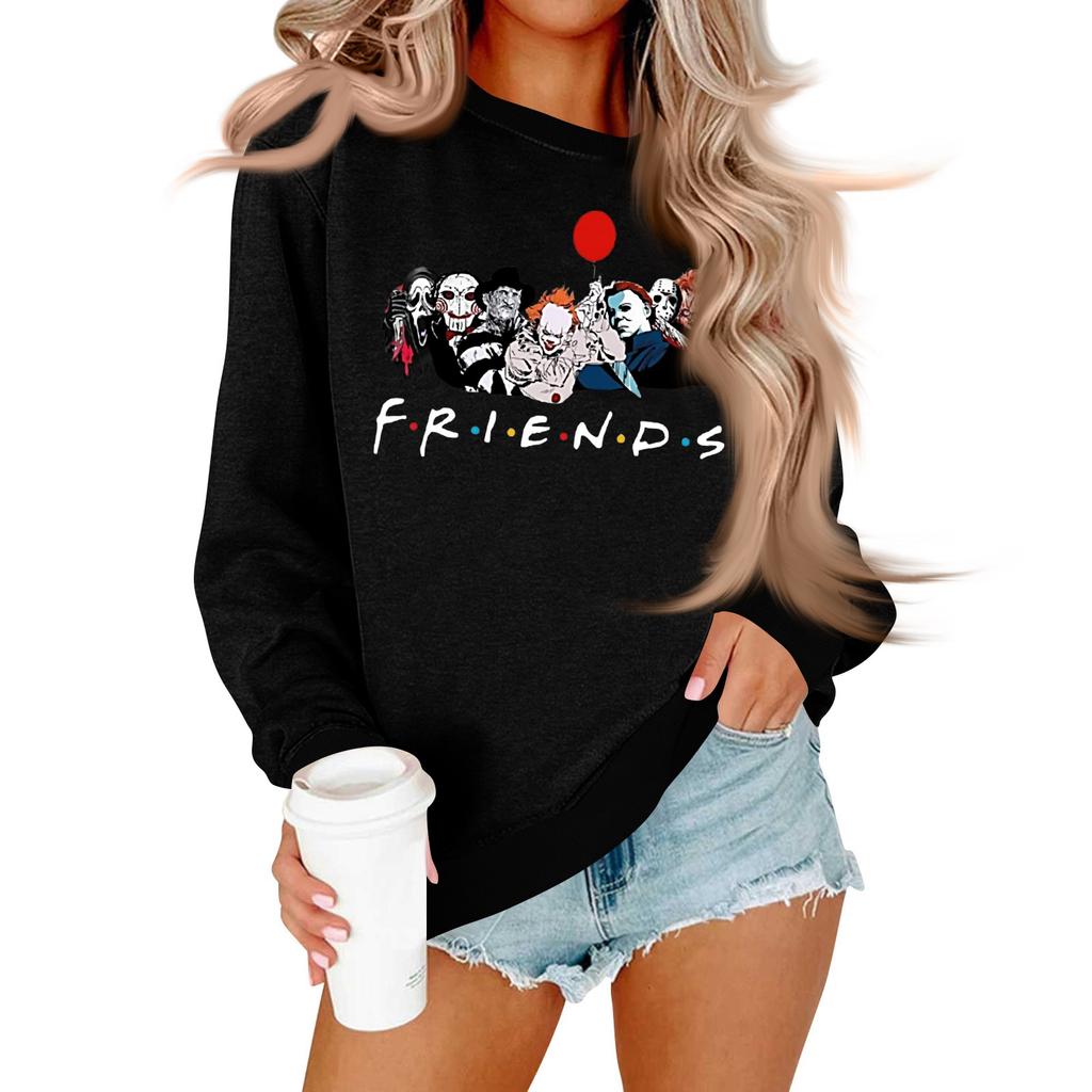 Женская и мужская унисекс модная повседневная толстовка с длинными рукавами, свободного кроя, с принтом, с круглым вырезом