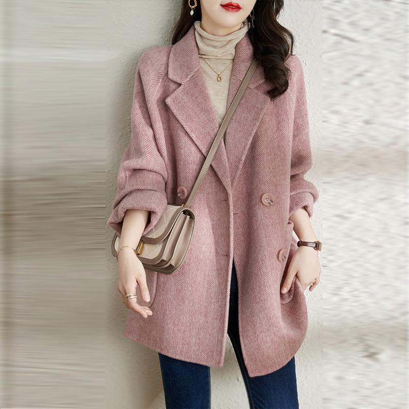 Костюм воротник темперамент шерстяное новое пальто в елочку свободная и тонкая куртка универсальный маленький топ