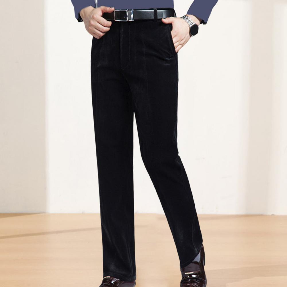 Подчеркните свой стиль с помощью этих универсальных вельветовых брюк для мужчин среднего и пожилого возраста.. Повседневный деловой дизайн легко сочетается с футболками или рубашками, создавая модный образ.. Эти брюки однотонного цвета и прямого кроя создают классический образ.. Застежка-молния на кнопках и боковые карманы повышают функциональность и позволяют хранить личные вещи.