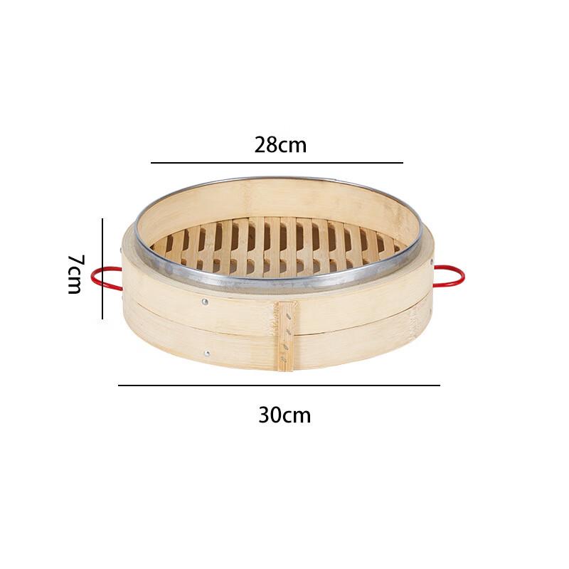 ZISIZ 30cm Steel Rim Bamboo Steamer Set
