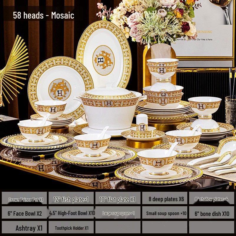 Набор столовой посуды Zhishi из 58 предметов из костяного фарфора с мозаичным декором