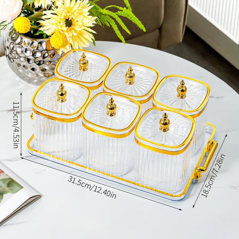 ZISIZ Transparent Square Kitchen Storage Jar with 6-Grid Tray