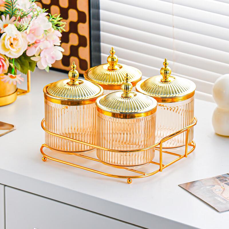 МодельБелая банка, золотая крышка, золотая подставка с 4 отделениями и ручкой-башней из бусин