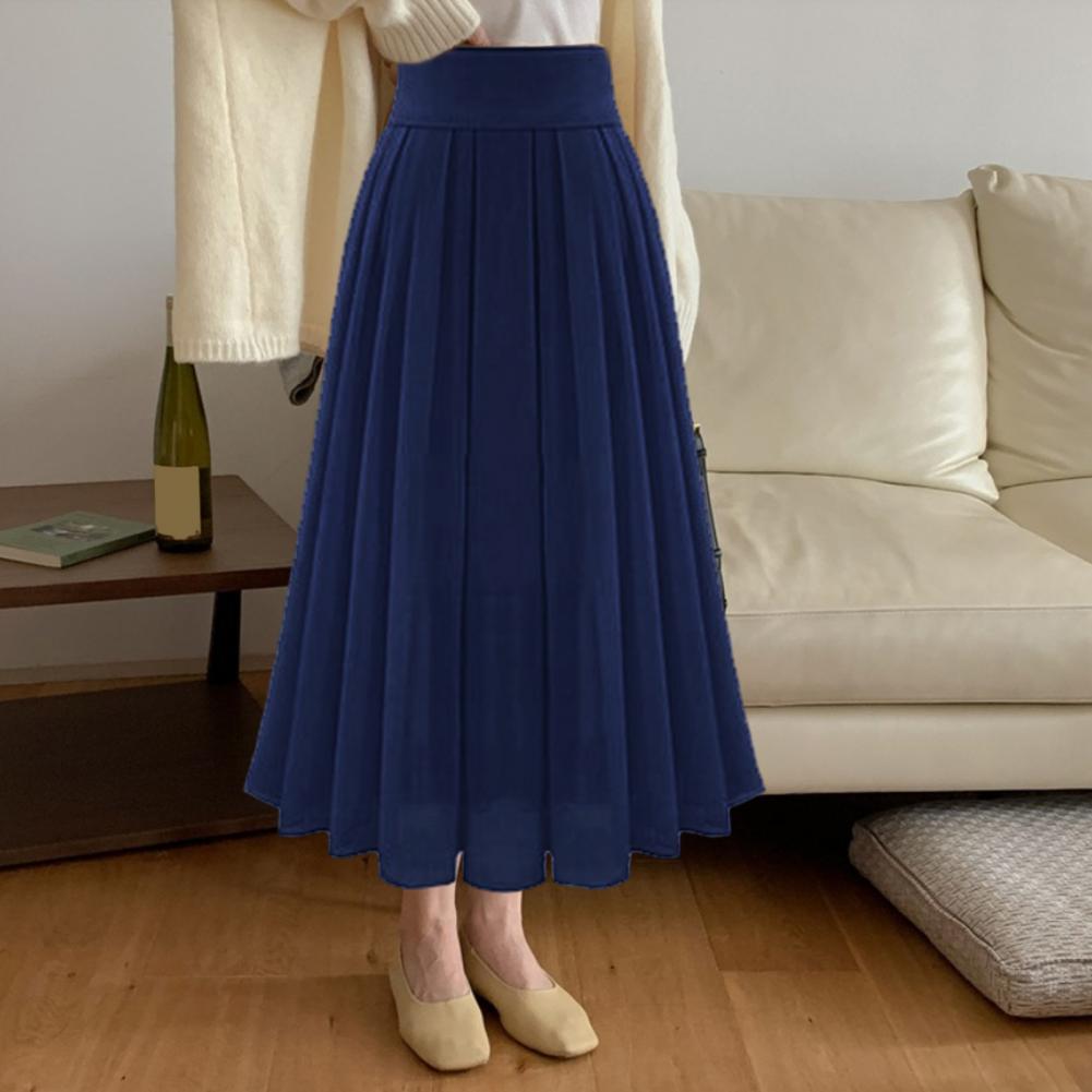 Женская юбка с высокой талией, плиссированная, свободная, однотонная, с эластичной резинкой на талии, мягкая двухслойная юбка до середины икры, женская повседневная юбка-миди для выпускного вечера