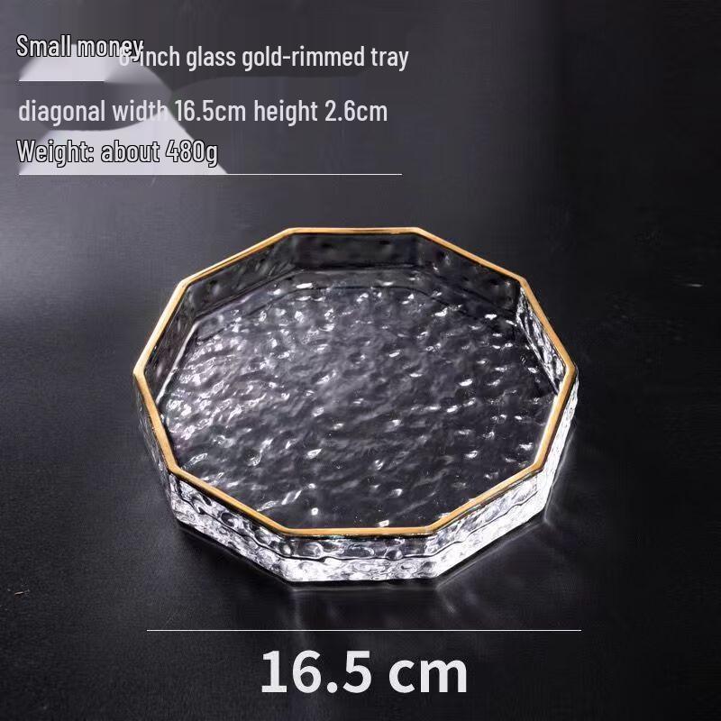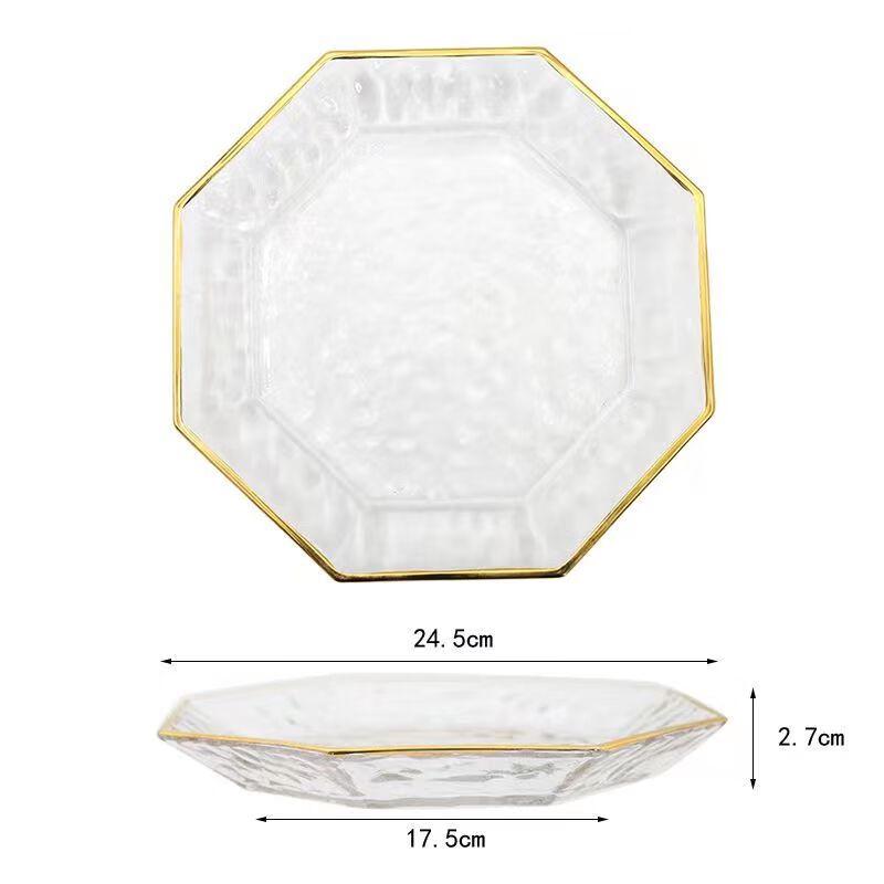 ZISIZ Gold-Rimmed Faceted Glass Serving Plate