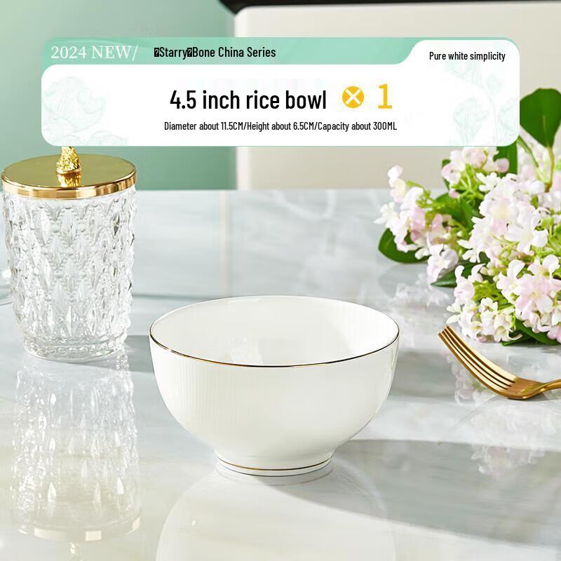 МодельПиала для риса 4,5 дюйма, чисто белая с золотой каймой
