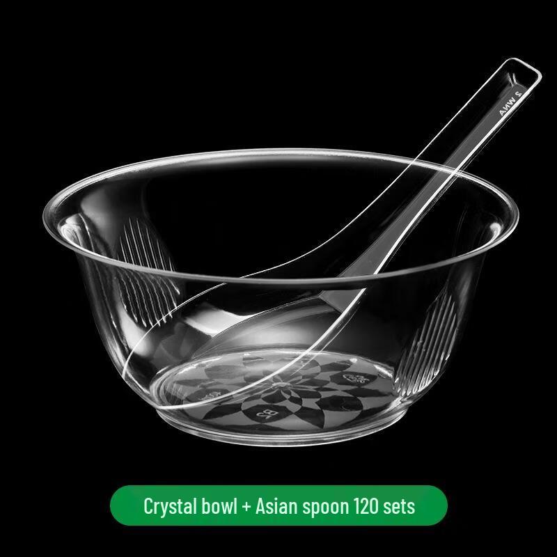 Набор одноразовых кристально-пластиковых мисок и ложек JINGRX