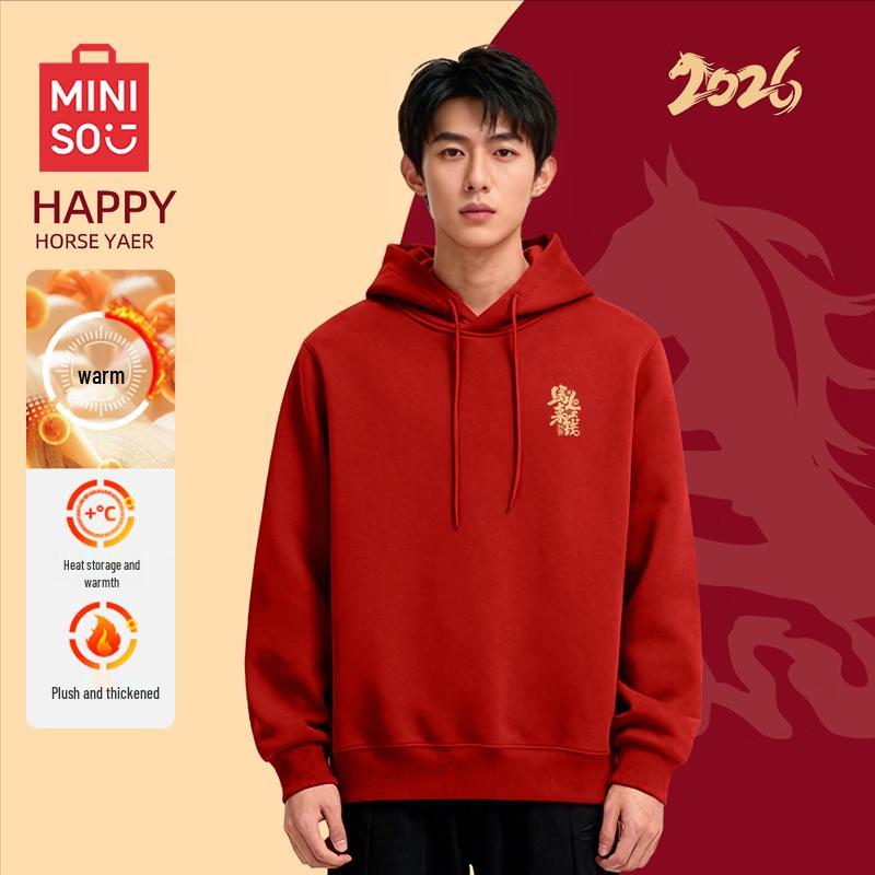 MINISO Unisex Festive Fleece-Lined Hooded Sweatshirt
