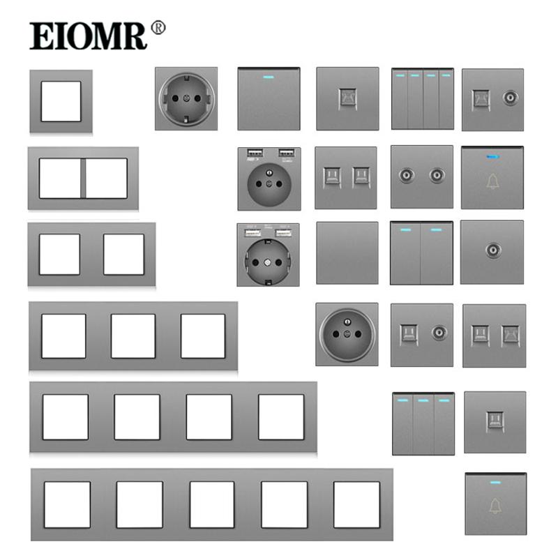 EIOMR A6 Series Grey Flame Retardant PC Panel Wall Switch EU Socket HDMI-compatible USB Type-C 2.1A Charger TV RJ45 Module DIY — купить товар онлайн с бесплатной доставкой по всему миру!