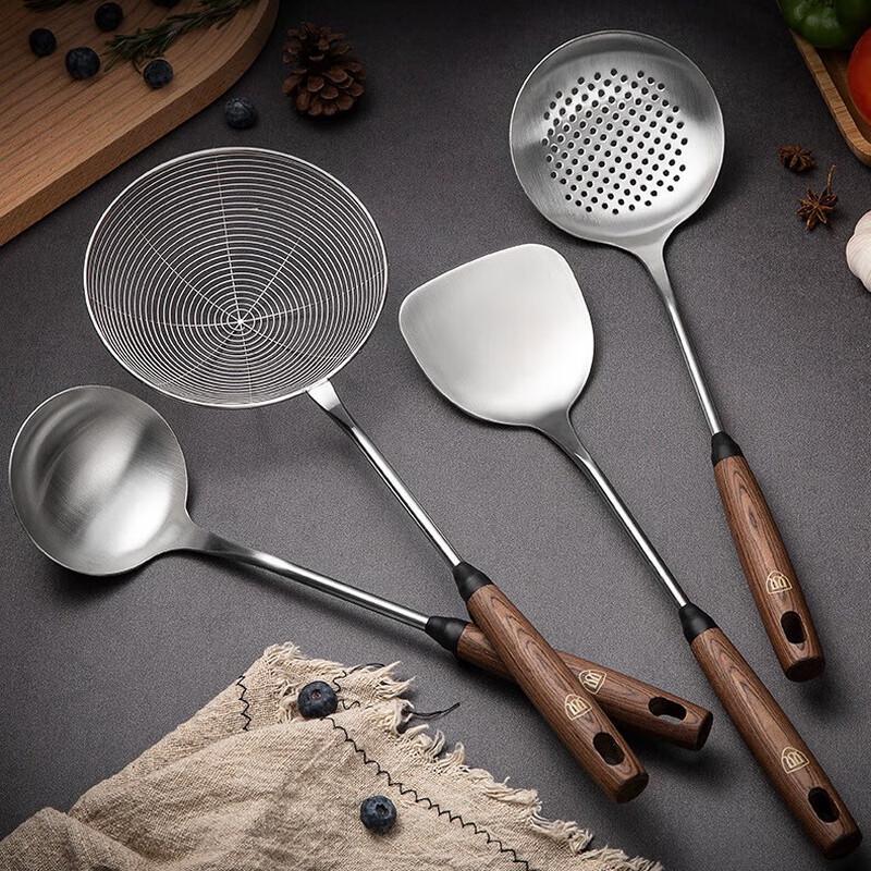 Shuangqiang Набор кухонной утвари из нержавеющей стали 304 с ручками из орехового дерева, 4 предмета
