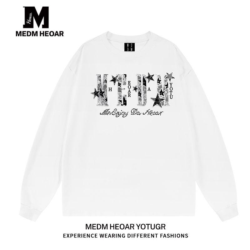 Medm Heoar American-Style Long-Sleeve T-Shirt for Men and Women, Trendy Brand, Spring and Autumn Base Layer Top [All Three Labels Complete]