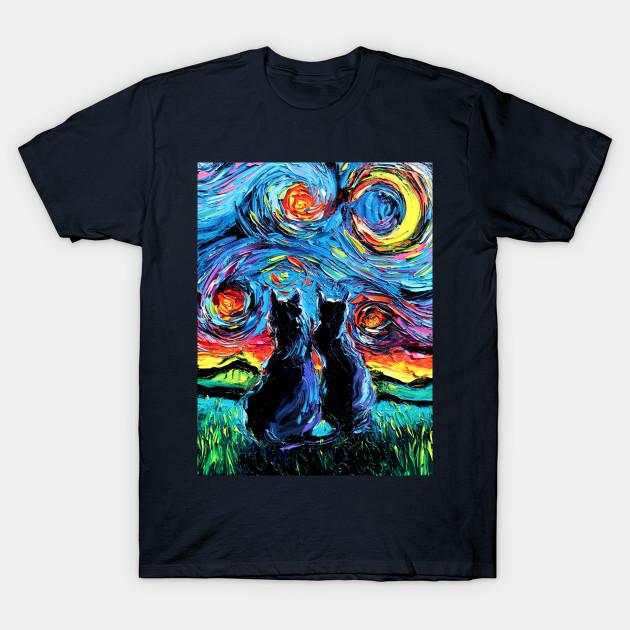 Мужская черная футболка с принтом «Кошки Ван Гога», принт на трансферной бумаге без выреза, хлопковая футболка