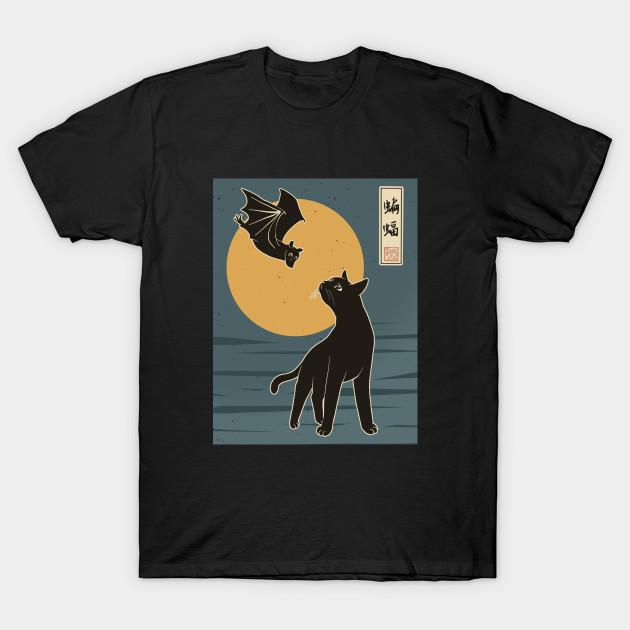 Мужская черная футболка с принтом Кот с летучей мышью Принт на хлопковой футболке методом термопереноса без обрезки