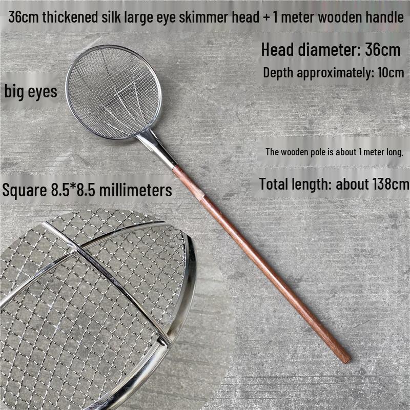 Stainless Steel Fine Mesh Colander Skimmer with Long Wooden Handle
