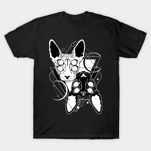 Men Black Print T-shirt Twin Sphynx Cat No-Cut Transfer Paper Print Cotton Tshirt