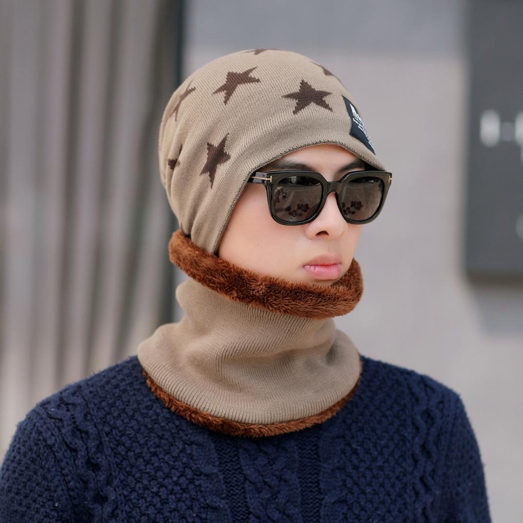 Зимняя теплая одежда, грелка для шеи, комплект шапки-бини и митенок, бежевый для мужчин