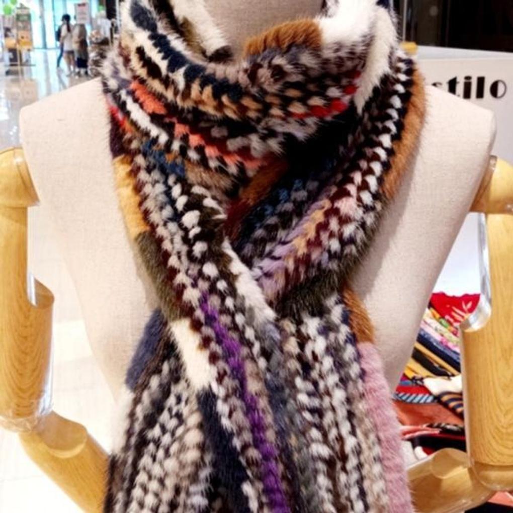 Shirring Skin Multi Mink Muffler E20F1FF107