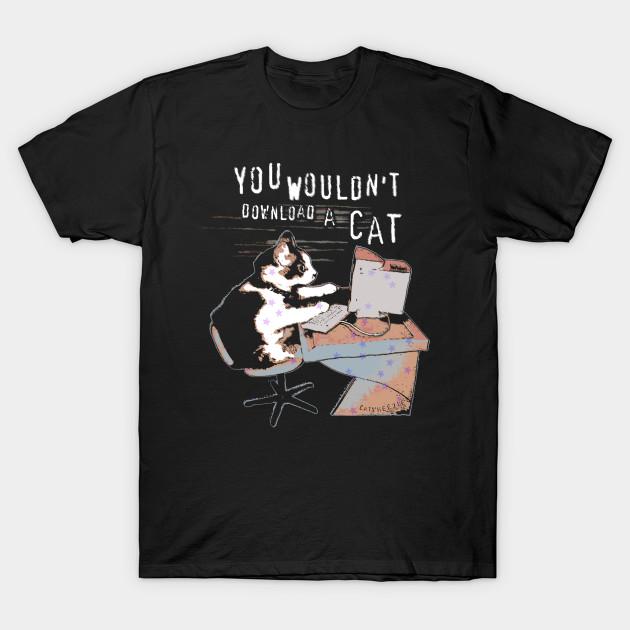 Мужская черная футболка с принтом Вы бы не скачали кота Принт на термотрансферной бумаге без обрезки Хлопковая футболка