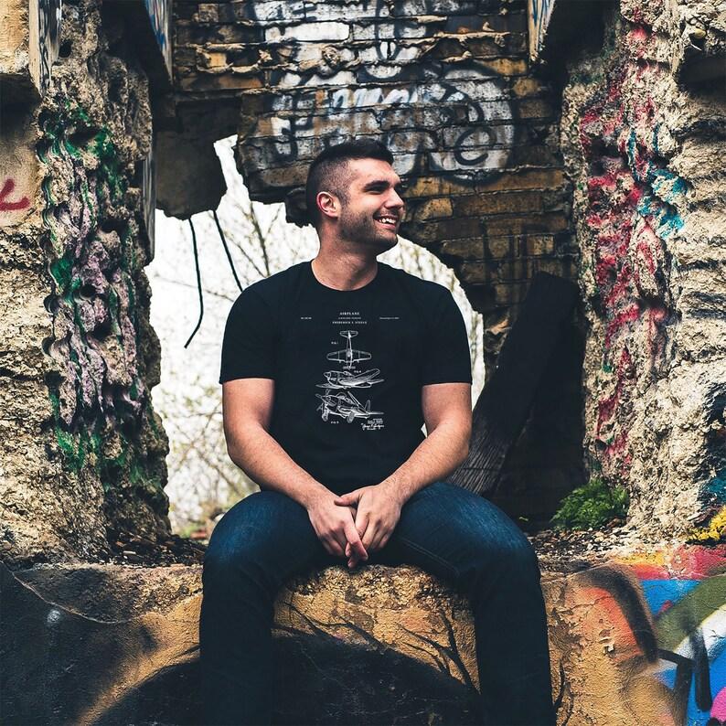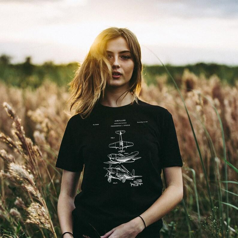 Aircraft Patent T-shirt Pilot Aviation Gift Low-wing Aircraft Shirt Engineer Pilot Gift Personality Deconstructed Short Sleeve