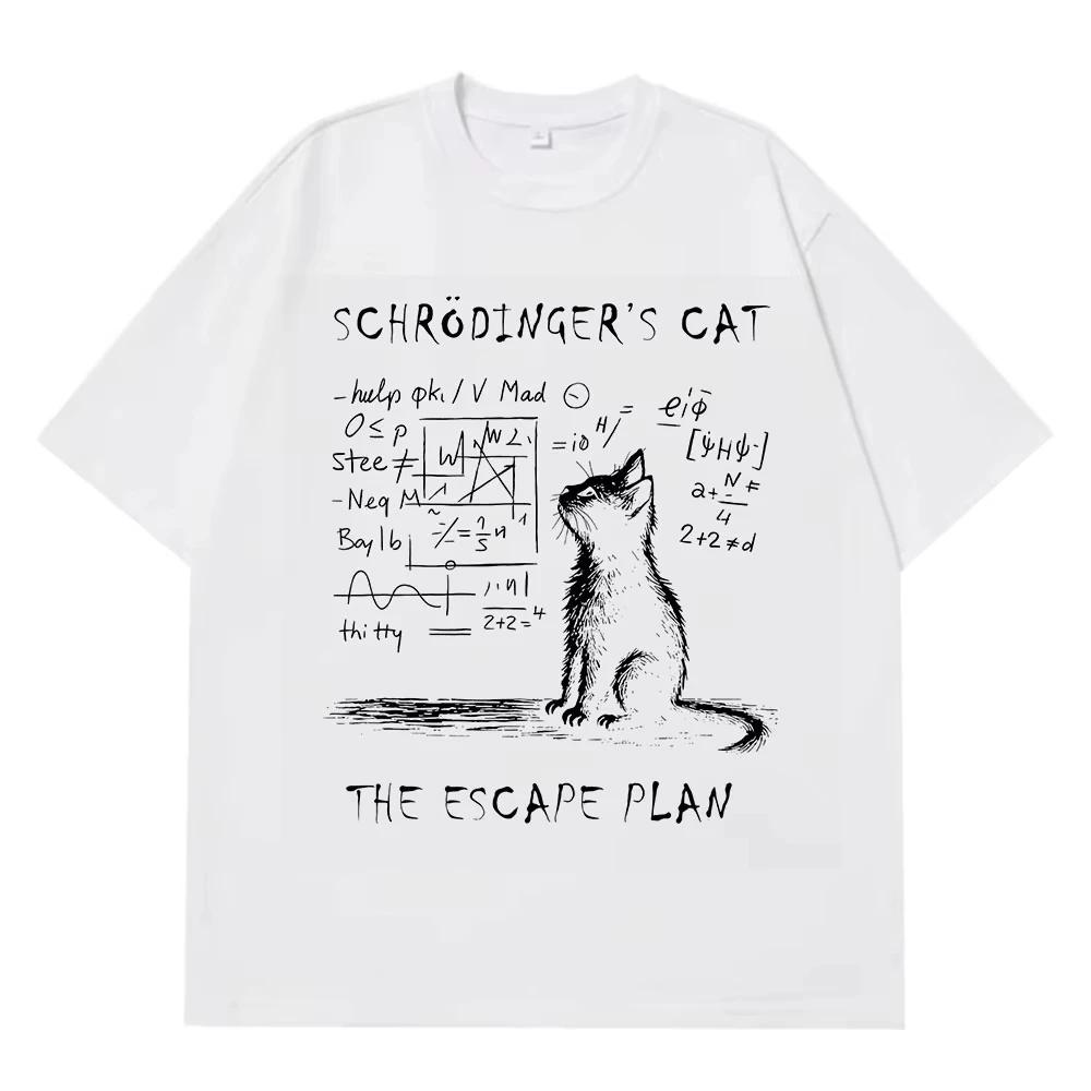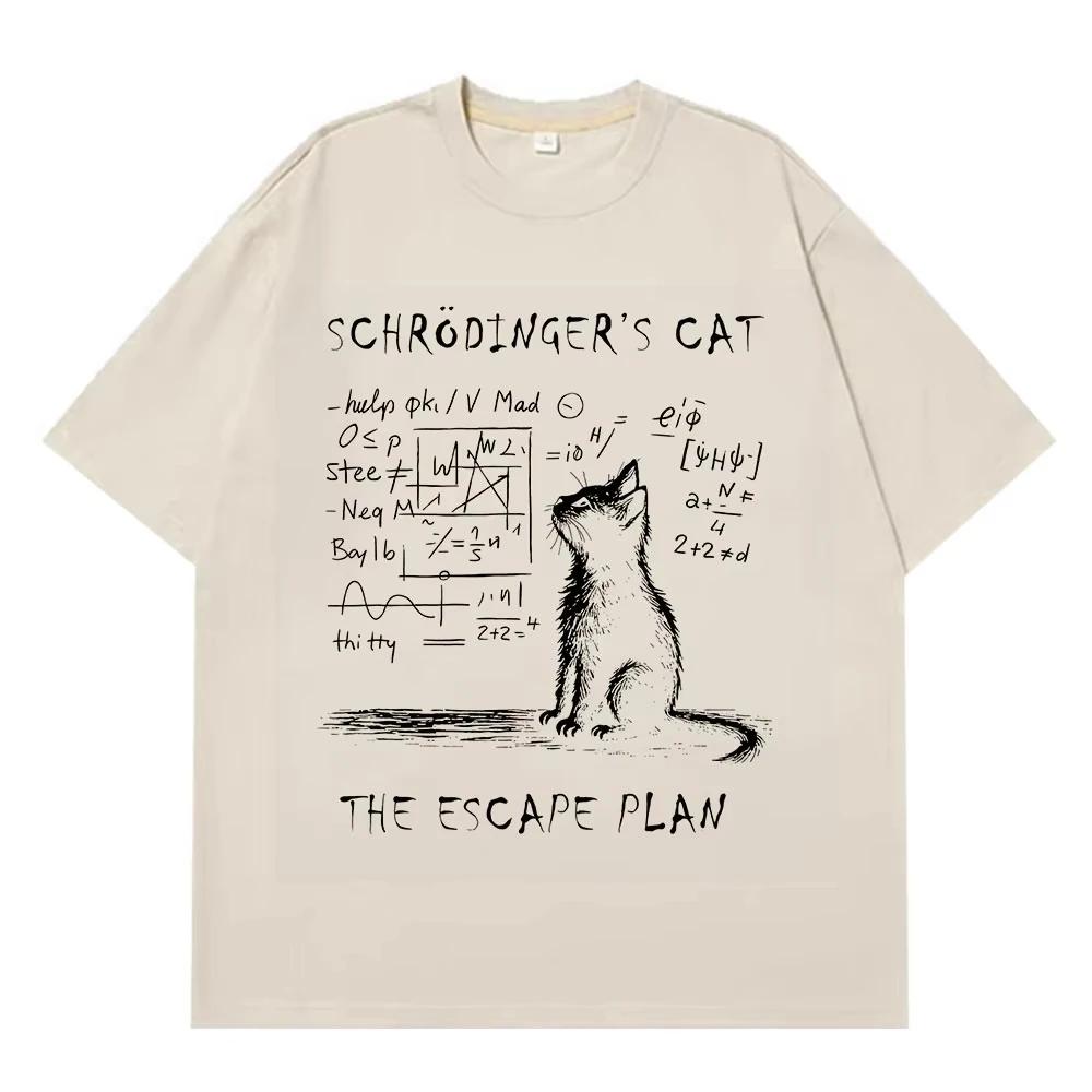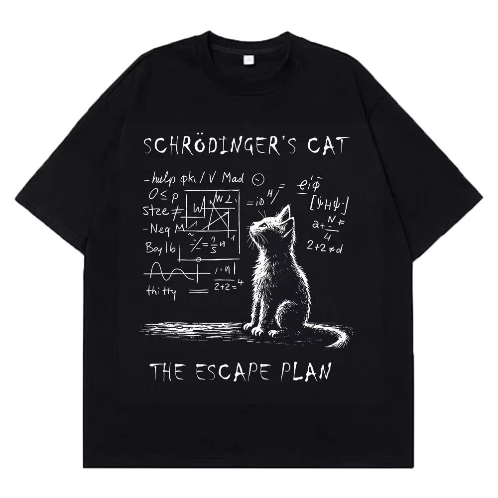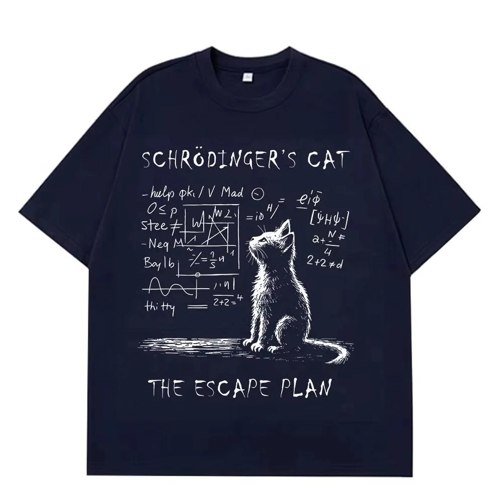 Men's Schrodinger Cat Quantum mechanics creative print 100% pure cotton short-sleeved T-shirt Street casual top