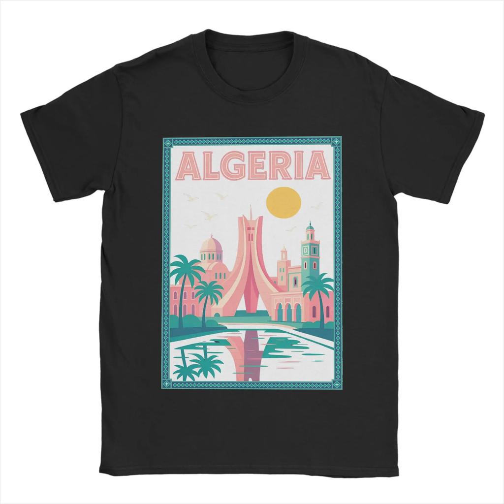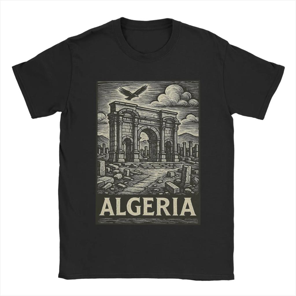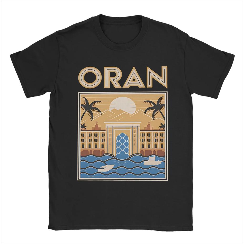 Men's 100% pure cotton T-shirt with Algerian city pattern print, hip-hop streetwear, casual top
