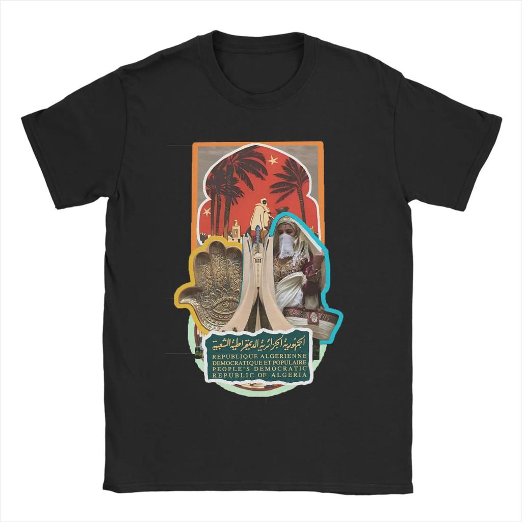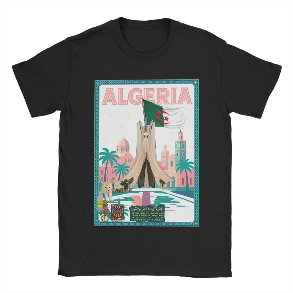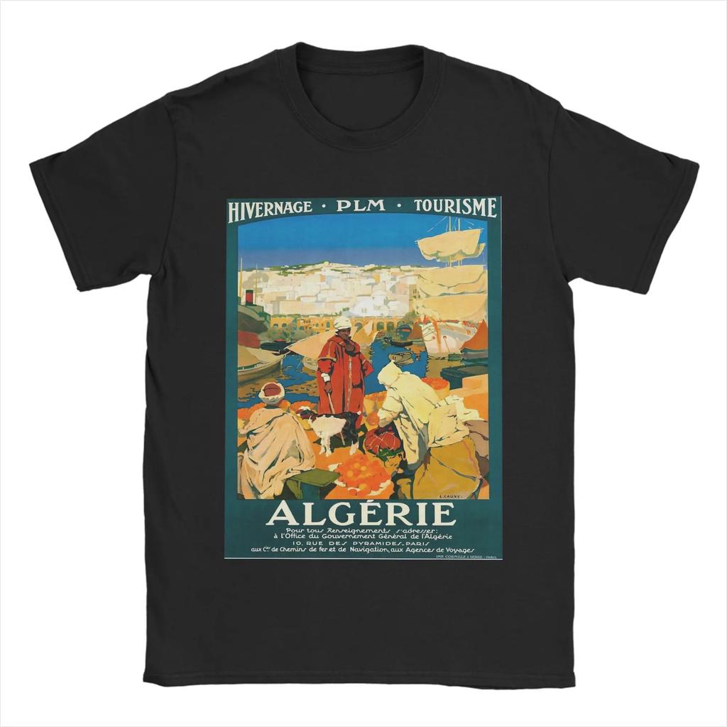 Men's 100% pure cotton T-shirt with Algerian city pattern print, hip-hop streetwear, casual top