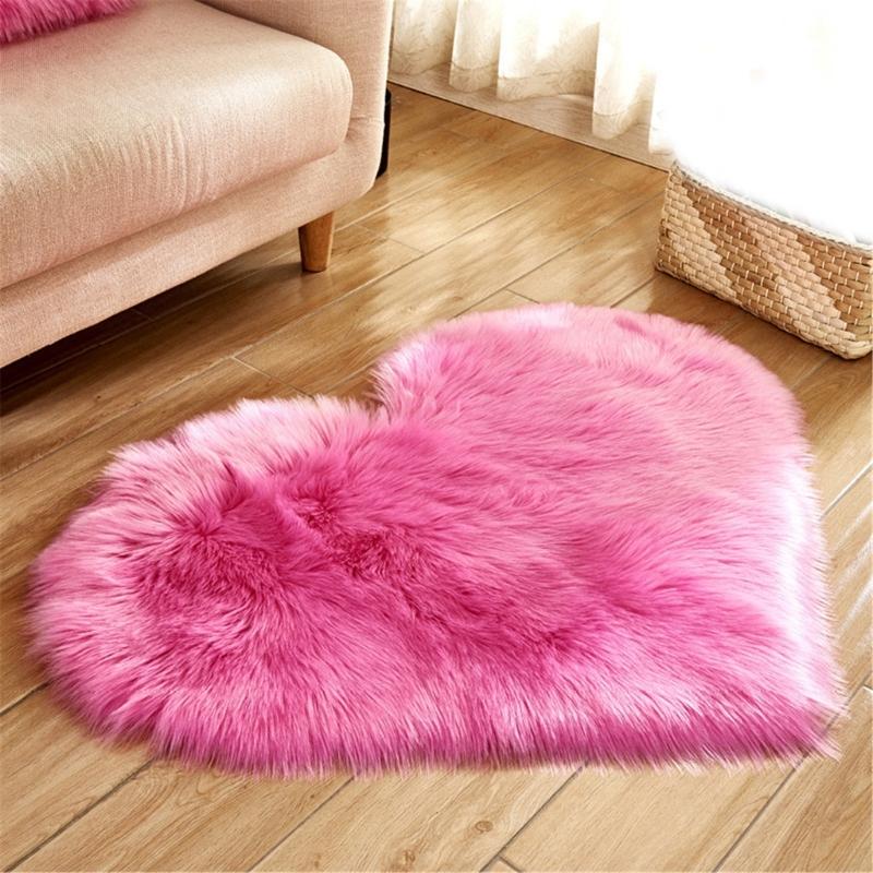 Мягкие Пушистые Коврики в Форме Сердца, Нескользящие Роскошные Плюшевые Искусственные Пушистые Ковры для Детской Комнаты Гостиной
