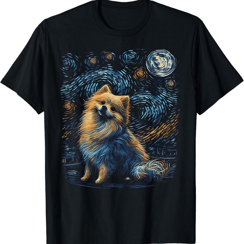 Pomeranian Dog Starry Night Van Gogh Dogs Lover T ShIRT Size S 5XL