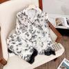 Весна/лето Имитация женской пижамы Классическая элегантная домашняя одежда с цветочным принтом Длинные рукава Брюки Комплект из двух предметов Одежда для сна