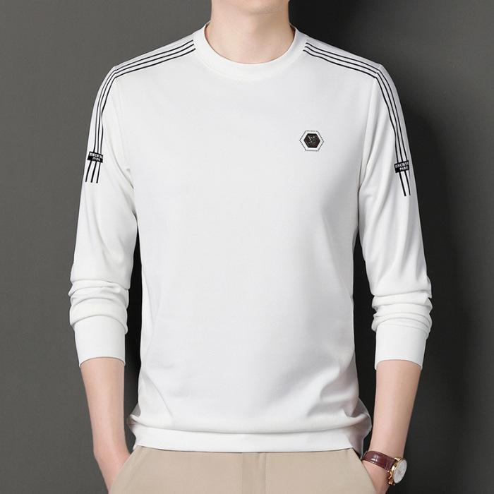 Мужская толстовка Весна и Осень Новый стиль для мужчин среднего и молодого возраста Футболка с длинным рукавом Мужская рубашка с круглым вырезом Повседневный свободный топ