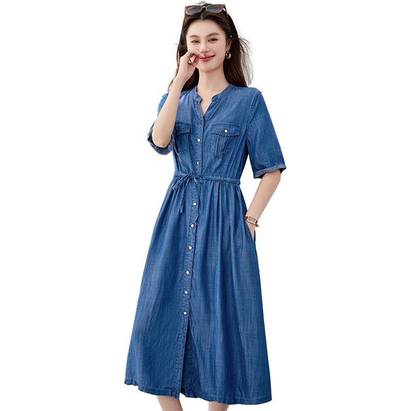 Летнее темпераментное джинсовое платье с кулиской на талии и тонким V-образным вырезом, солнцезащитное, женское, с эффектом омоложения