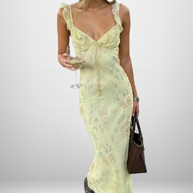 Весеннее новое женское элегантное безрукавное платье с открытой спиной и принтом модное женское платье