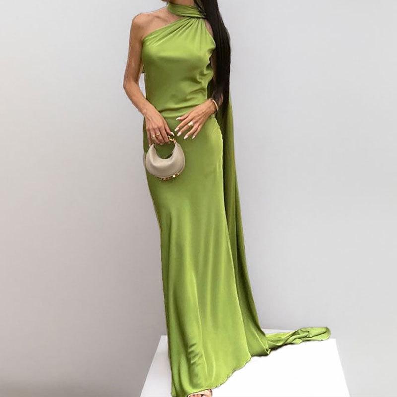 Стиль Женская летняя новая длинная юбка Темпераментная юбка с воланом на шее Платье в стиле знаменитости — купить товар онлайн с бесплатной доставкой по всему миру!