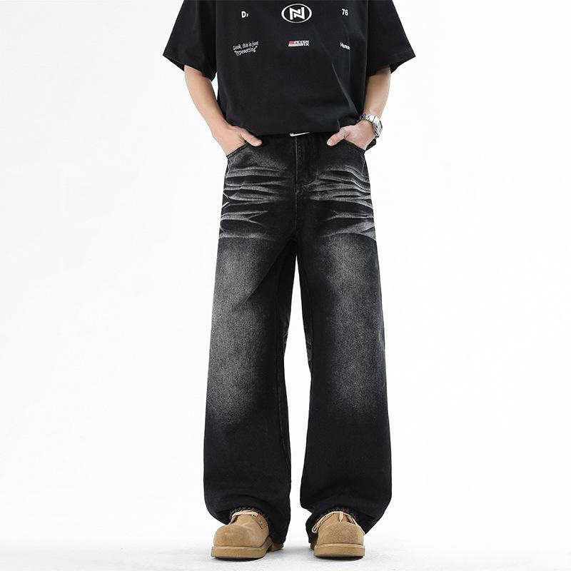 Ретро-стирка синие джинсы мужские весна-лето новые свободные прямые широкие брюки повседневные универсальные спортивные брюки