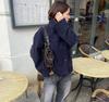 Женская темно-синяя куртка с высоким воротом, короткая, повседневная