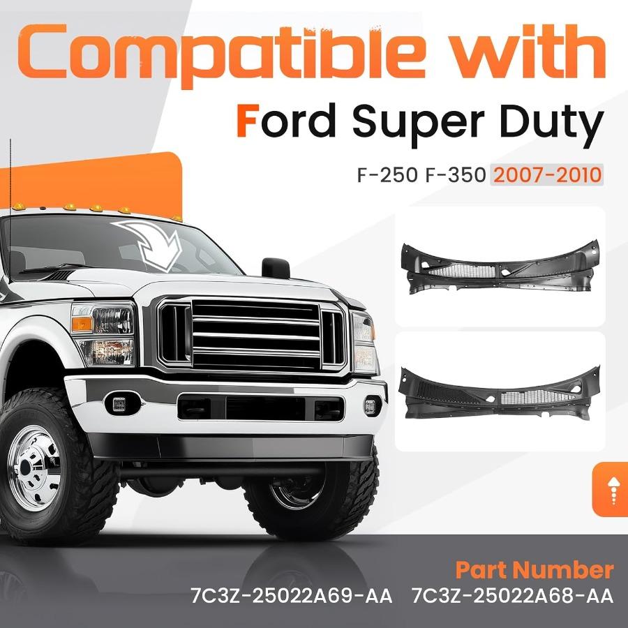 Windshield Wiper Cowl Panel Grille for 20072010 Ford F250 F350 Super Duty Replacement Front Window Cover Insert Panel Left and