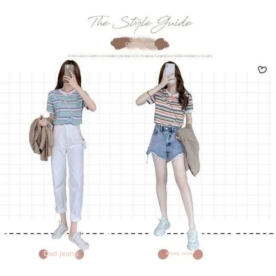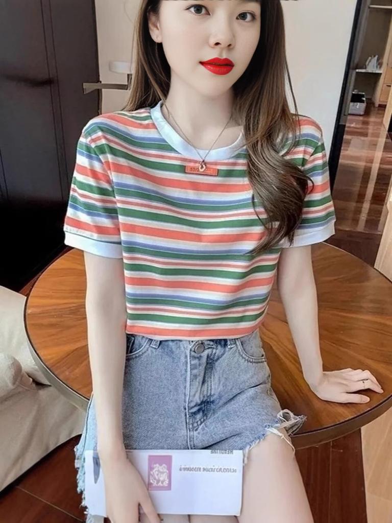Винтажный стиль! Радужная футболка в полоску с цветными блоками, свободный топ с коротким рукавом для женщин, трендовый