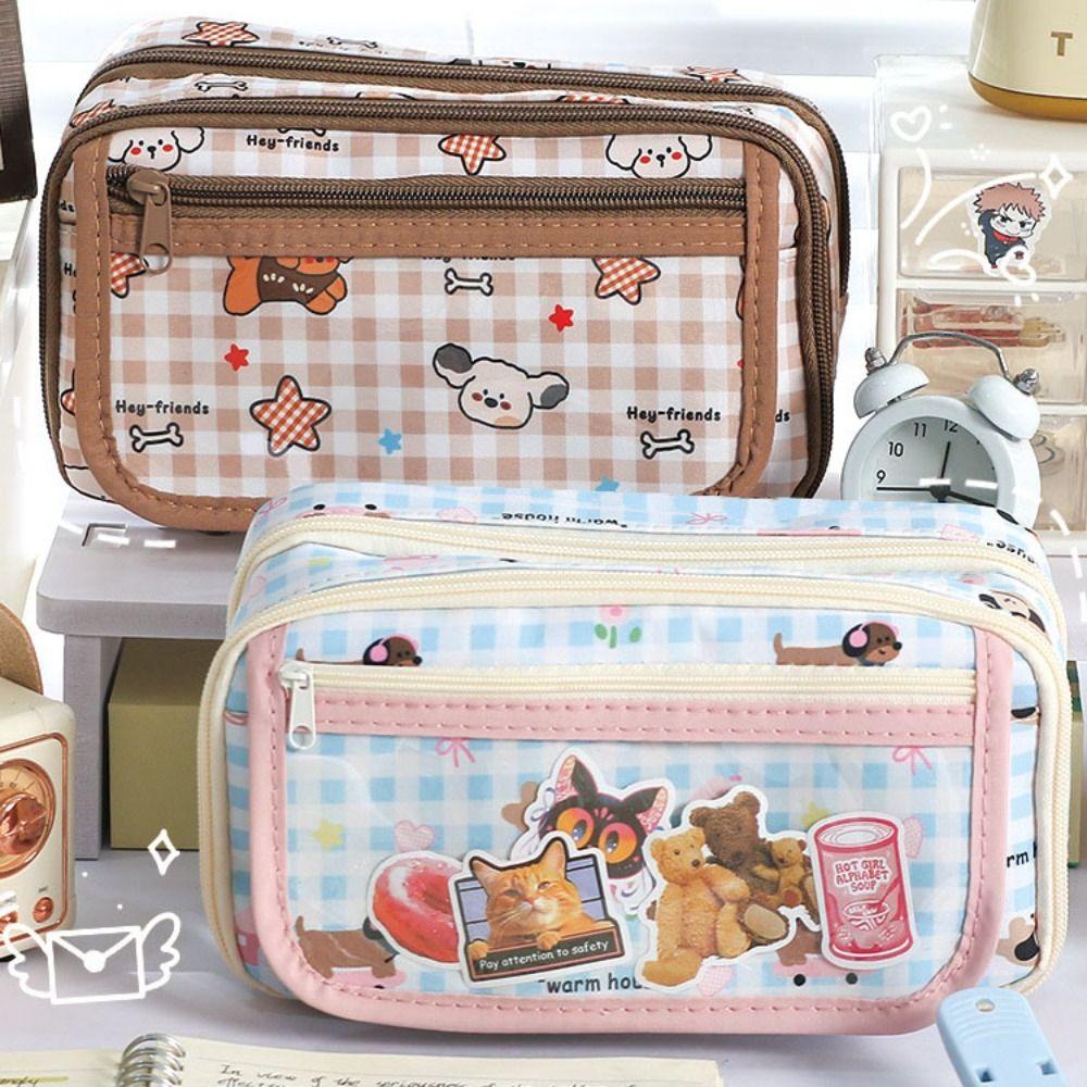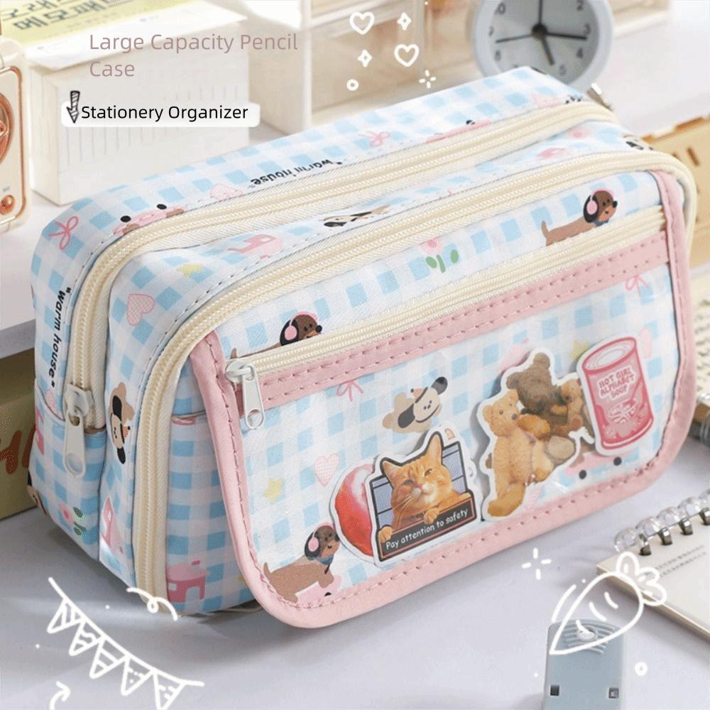 Large Capacity Stationery Bag Multi-layers Pen Pencil Case Kawaii Pencil Bag Kids