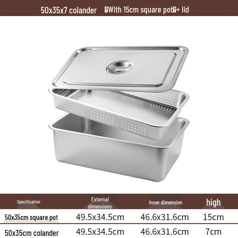 Youde 304 Stainless Steel Square Colander & Solid Basin Set with Lid