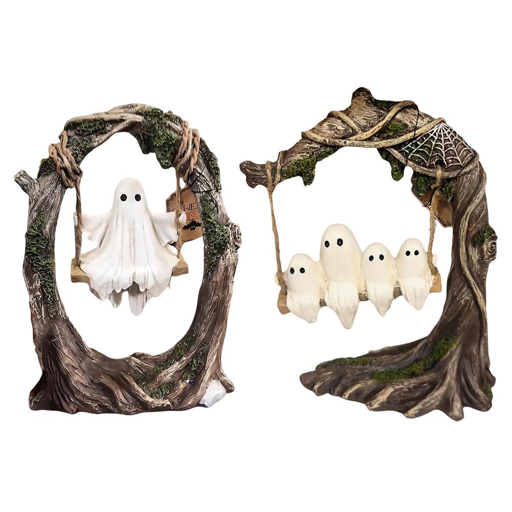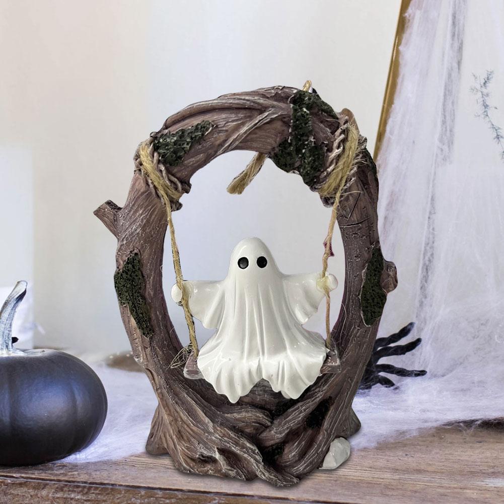 Halloween Swing Ghost Ornament White Ghost Sculptures Funny Tree Hanging Ornaments for Tabletop Centerpiece