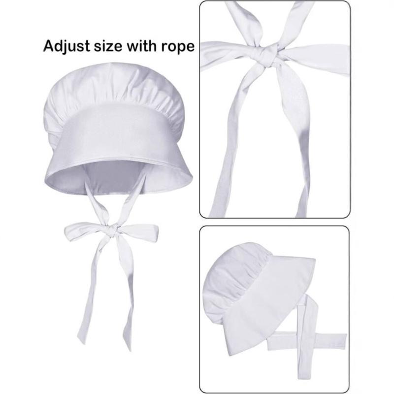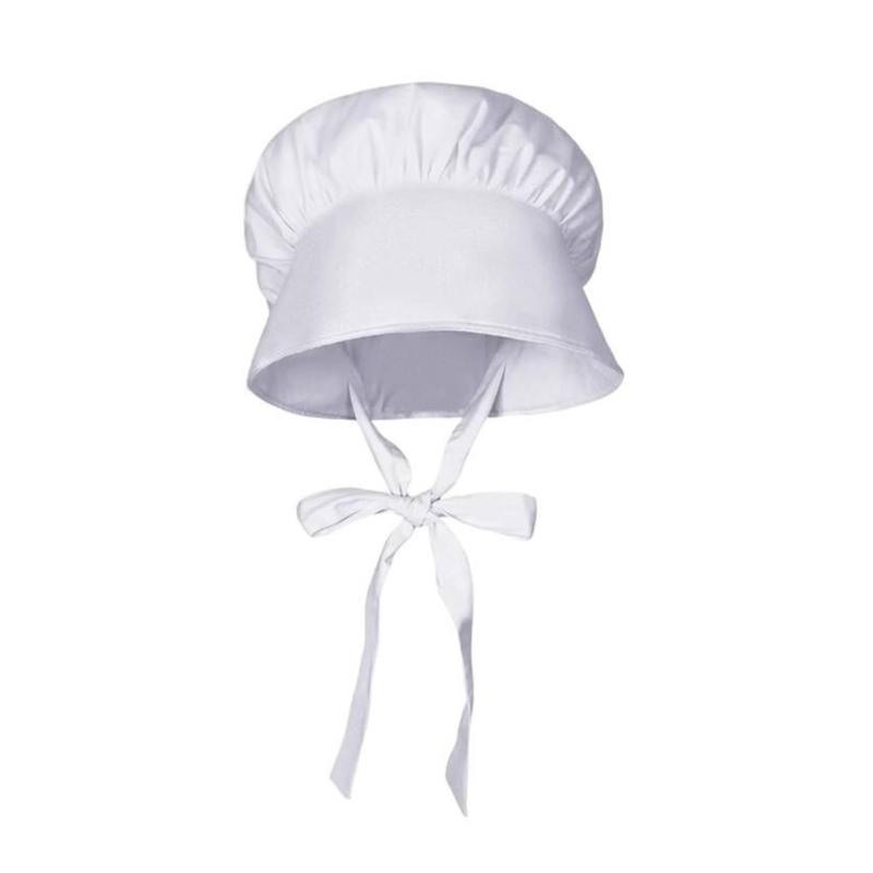 Удобный и нежный белый чепчик с милой оборкой и белого цвета, чтобы подчеркнуть вашу красоту и элегантность, изготовлен из полиэстеровой ткани, удобный и легкий в носке, с регулируемыми завязками, не деформируется и не растягивается